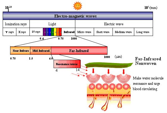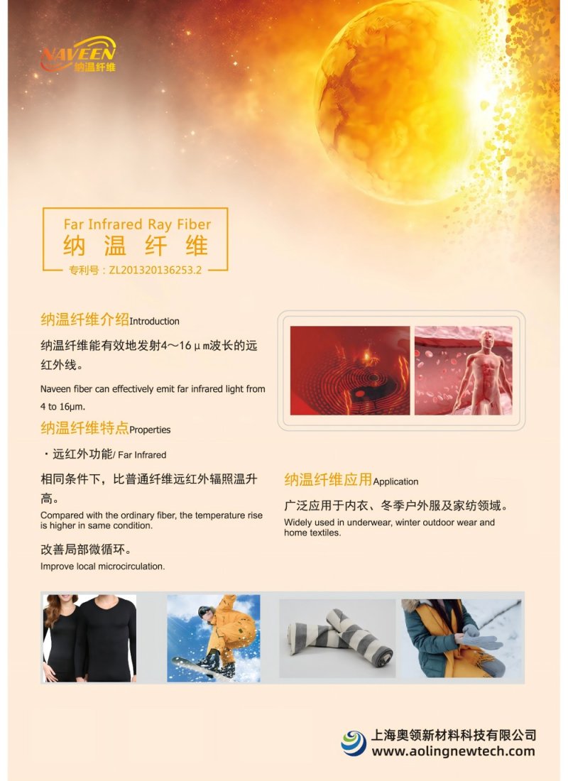 納溫纖維能有效地發(fā)射4~16μm波長的遠(yuǎn)紅外線,易被人體吸收